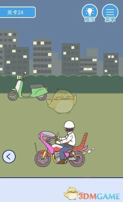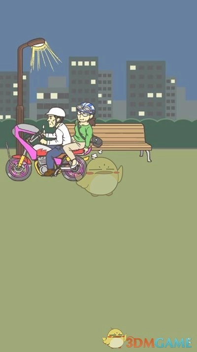 1. 开始之后,我们将会看到一段过场动画,紧接着画面切换至公园。将画面移动到场景二,获取白色头盔,随后把头盔放置在摩托车上。