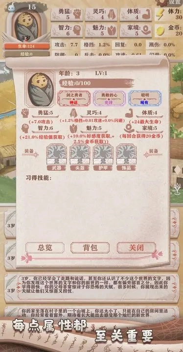 1、玩家会从初始状态着手,对自身角色展开培养,在过程中完成各类任务并应对随机触发的事件,进而体验到丰富多样、充满趣味的战斗玩法。