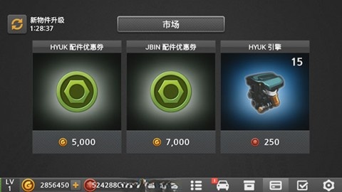 9、还能够在【市场】里购买组件,当集齐全部组件时,就能合成新的赛车。