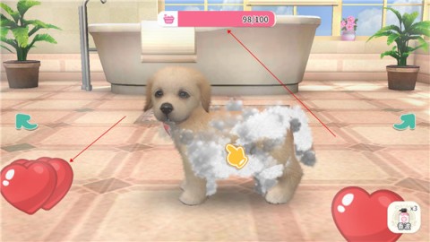 3、每次你展开互动,屏幕上便会呈现出详细的进度条。随着互动完成度逐步提升,狗狗的心情愈发愉悦,掉落的爱心图标更是你们友谊升温的直观展现。