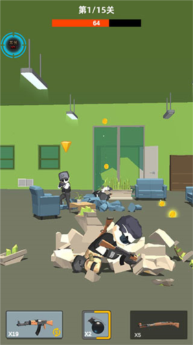 1、这是一款全新的动作射击游戏,采用超休闲的玩法与射击相结合的模式,既能让你在游戏中尽情施展策略搭配,又能充分展现你那炫酷的枪法。