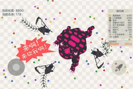 4、在挑战过程中,哪怕是操控小蛇,也有机会在作品里实现逆袭。玩家只需让敌人的头部触碰到自己的身体,就能消灭对方。
