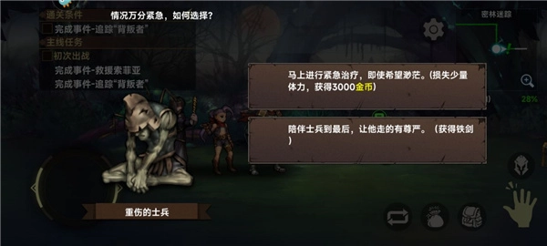 在途中遇到重伤的士兵时,系统会为你提供两个选项,这两个选择各有优劣,具体如何抉择全看你自己。