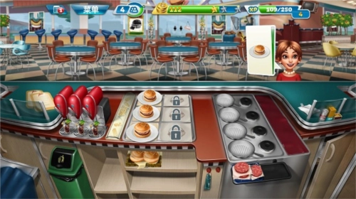 随着玩家持续解锁关卡,能获取更多新食材与道具,同时也会愈发手忙脚乱。在此,小编分享一个小技巧:不少客人会选择点套餐,而套餐里只要上了其中一款食物,就能延长顾客的等待时间,所以可以提前准备一些饮品,用来增加顾客的等待时间。
