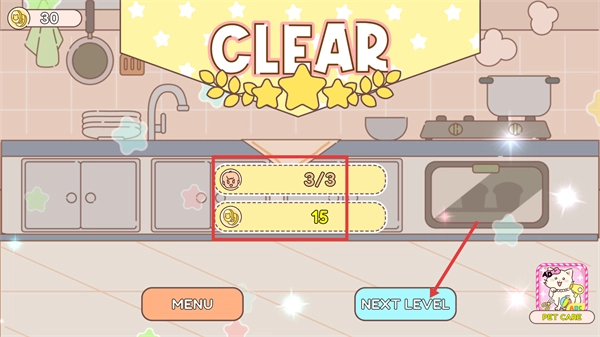 完成【3/3-顾客订单】后即可通关并获取相应金币,点击界面上的【NEXT-LEVEL】按钮就能进入下一个关卡。