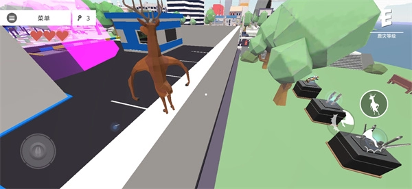 玩家的鹿总共有3条生命值,被警察追捕时只会逐渐消耗血条,但要是被考拉这类BOSS级敌人攻击,一旦倒下就是一击致命。