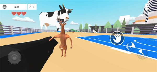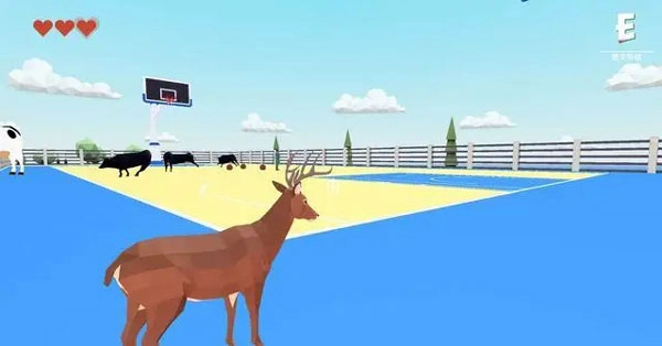 可能有人会疑惑:奶牛该去哪里找呢?别着急,整个地图里总共有三只奶牛。复活的时候,只要看到远处体型最大的那头牛,朝着那个方向跑过去,就能看到一个篮球场,里面有两只奶牛正在玩耍,随便抓一只带走就可以了。