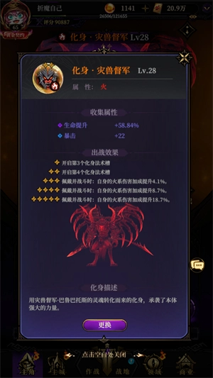 化身能承载勇士的法术,在战斗时自动释放法术辅助勇士作战。它没有实体,不会受到伤害,且其使用的增益类法术均以勇士为作用目标。解锁该功能的条件是通关灵魂枢纽第一层。当前游戏内有史诗、传说和太古品质的化身,不同化身具备不同的属性加成效果,可直接对勇士进行强化。升级化身不仅能提升属性加成,还会解锁化身法术槽;强化化身需消耗对应属性的精魄,不同等级的精魄在强化时的效率存在差异。化身从零星升阶至一星时,会解锁第三个化身法术槽;升阶到二星时,将解锁第四个化身法术槽。此外,升阶操作还会提高化身的等级上限,并赋予其特殊的出战效果。
