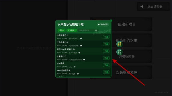 之后会弹出模组列表,里面的模组数量不少,玩家可以挑选合适的,然后点击最右边的那个。