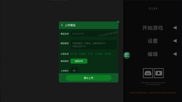而且还可以上传自己的模组,只需要输入一个模组名称和模组描述就可以了。
