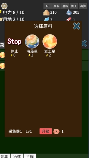 两个星球开采原料的效率存在差异,同一星球上的同种原料仅能由一个采集器进行开采,因此需依据当下的需求来挑选适宜的开采项目。