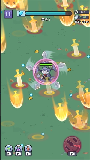 《圣泉战争》是一款休闲向小游戏,玩家只需通过简单的屏幕滑动操作,就能操控角色移动走位,而角色会自动释放技能来击退怪物。游戏的战斗机制融合了自动攻击与策略走位的元素,玩家需要在战斗过程中拾取怪物掉落的道具,以此实现角色升级,解锁更多技能。 游戏的剧情设定十分饱满,围绕勇者灰灰的冒险之旅展开。玩家将跟随灰灰与他的伙伴们,共同踏上一段充满未知的征程,历经重重冒险与挑战,最终揭开隐藏在事件背后的真相,守护并拯救他们的家园。
