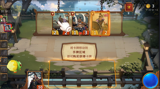 将卡牌移动到手牌区域,即可购买获得卡牌