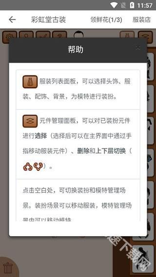 5、点击正下方的服饰图标进入游戏后,会弹出帮助界面供玩家查看参考。