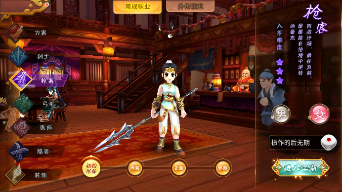 枪客:入门难度3星,属于近战职业,暴击伤害十分可观,并且角色的血量越低,所能造成的伤害就越高。