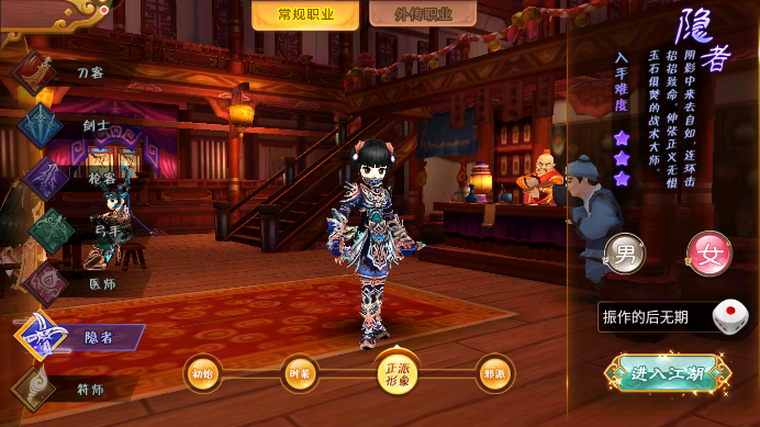 隐者这个职业,上手难度评级为3星,定位类似于其他游戏里的刺客角色,具备高攻击与高闪避的特性。