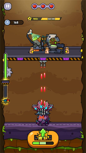 4、每下降到一定程度就会遭遇怪物,若遇怪物攻击,可点击跳跃来躲避。