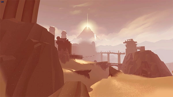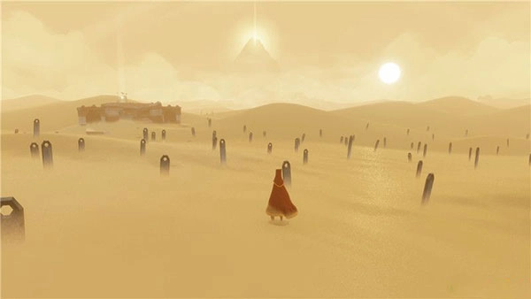 《风之旅人》的游戏流程分为多个章节,各章节里符文与壁画的数量和分布情况都有所不同。在第二章中,玩家能找到三个符文和一幅壁画,要完成相关交互,需要在沙漠区域进行较长时间的飞行来定位目标位置。