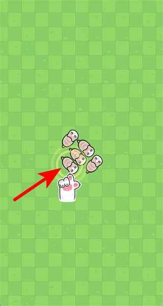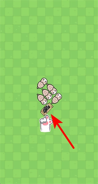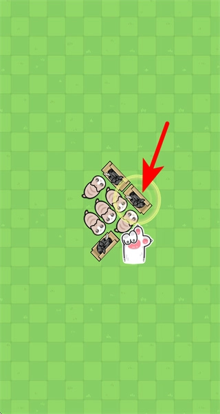 1、进入关卡后,点击目标区域带黑煤球的木板,触发小生物的移动与合并操作。