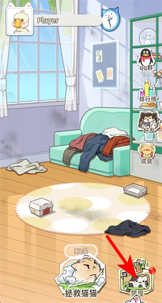 4、关卡结束后,点击猫屋按钮,进入养成界面,解锁小生物的后续培育功能。