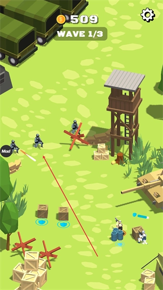2、进入WAVE2/3阶段,继续攻击敌方士兵,获取更多金币。