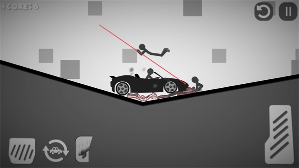 1、操控汽车移动,利用斜坡撞击火柴人,积累得分。