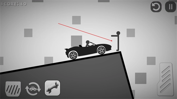 4、驾驶汽车靠近路牌等障碍物,利用场景元素撞击火柴人,推进游戏。