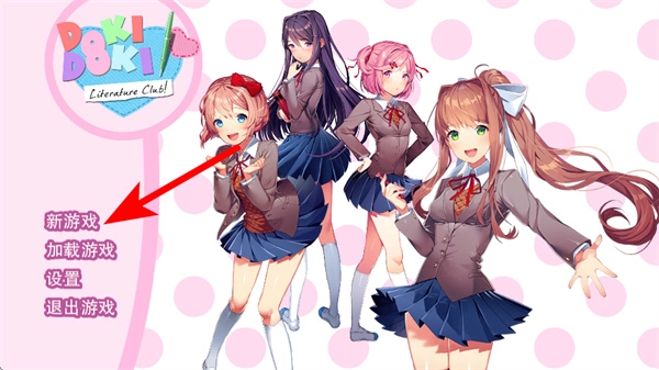 1、在启动界面点击新游戏选项,进入心跳文学部的剧情互动场景,开启文字冒险流程。