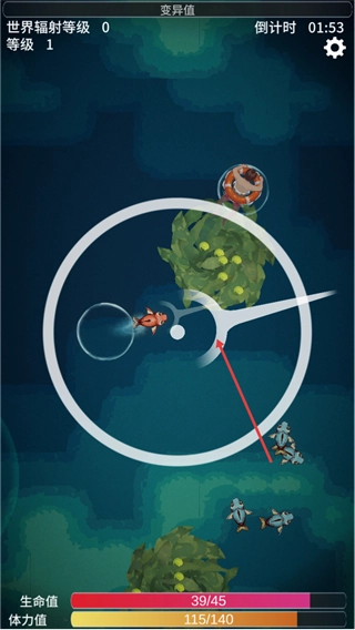 4、关卡推进后会进入选择一项变异界面,可挑选变异特性来强化鱼身属性,根据战斗或生存需求选择合适的变异,提升后续关卡的生存能力。