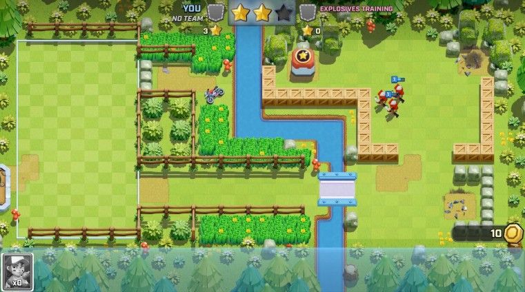 一张地图如图所示,你用兵种打掉对面的金矿(?)(没有防御能力,一共三个),打完所有的金矿即结束战斗。一个金矿即一个星星,一天获得的星星上限暂时不明(或者没有?)。地图貌似不可自我编辑格局,地图上随机布有炸药桶,使用法术、兵种的AOE伤害和炸药桶的连锁反应都可以触发,发生一定范围内的爆炸(对建筑伤害高,对敌方防御兵种伤害低,对我方兵种无效)。