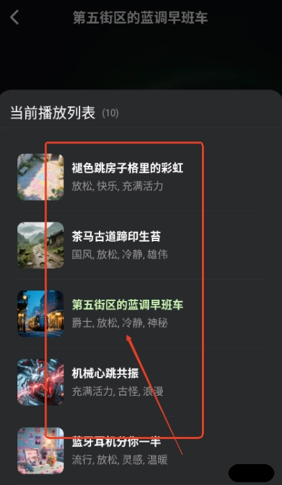4、用户点击右下角的三条横线图标,即可打开播放列表,在其中能够自由切换歌曲。