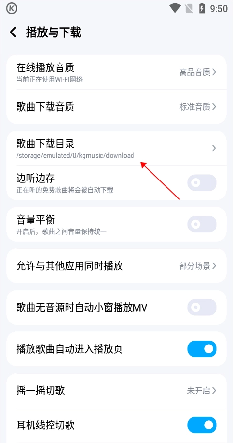 5、在新的页面中,找到【歌曲目录】,并记住该路径。