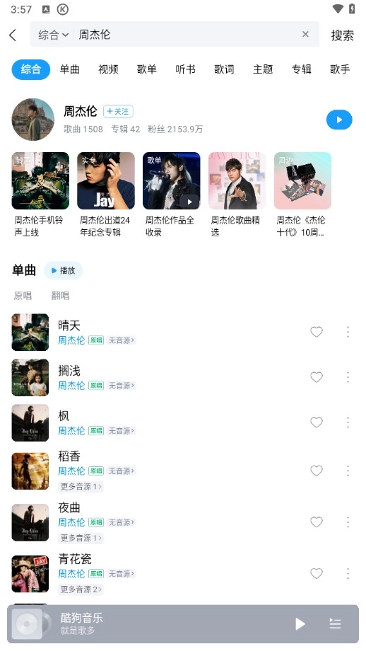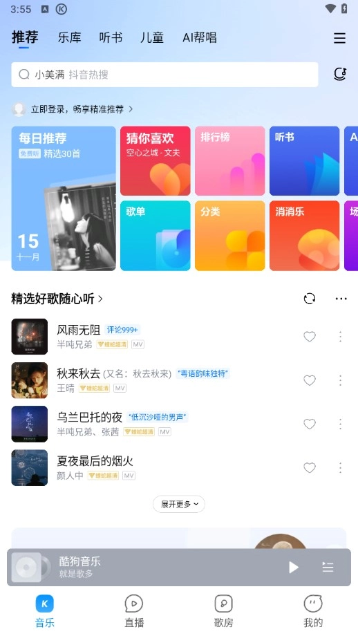 酷狗音乐2024最新版,备受喜爱的音乐应用,整合了全网最优质的音乐资源,让你轻松找到最新和最受欢迎的歌曲。无论你喜欢哪种风格的歌曲,都能通过简单搜索快速播放。应用根据用户的听歌习惯,智能推荐个性化的音乐内容,同时提供多种播放模式和自定义听歌时长的选项,为你带来更加个性化的听歌体验。