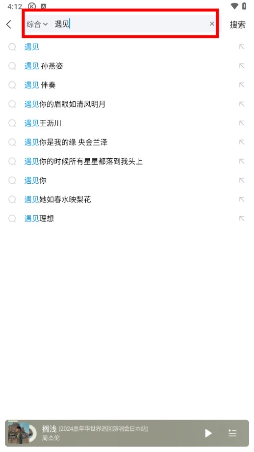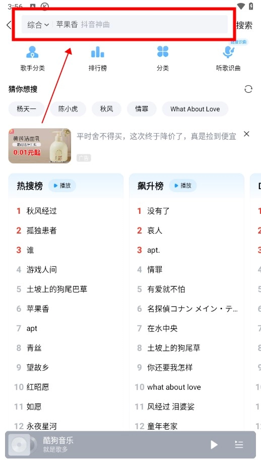 3、在搜索框内输入自己想查找的歌曲名称或歌手名字。