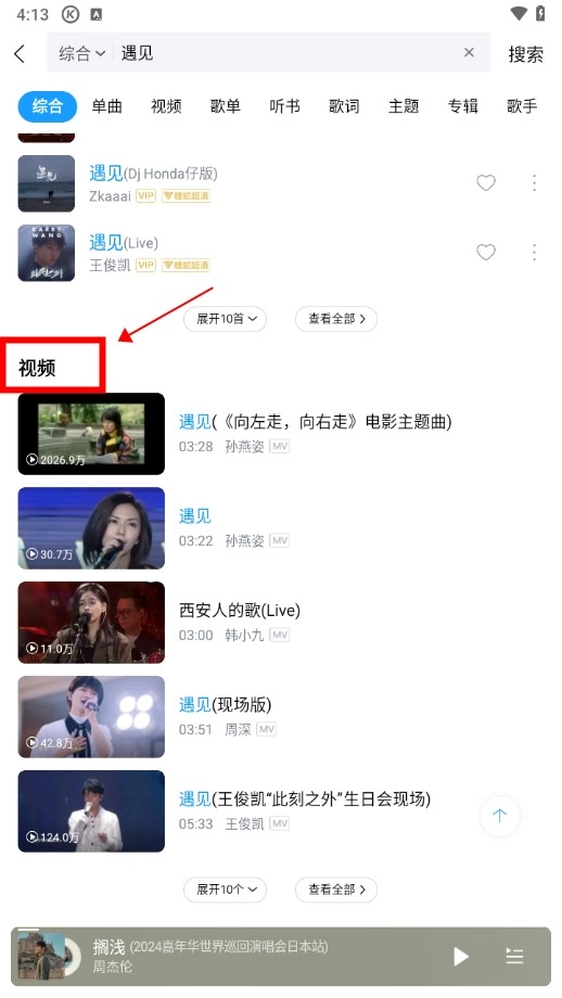 3、进入页面后,向下滑动并找到视频标题,选择你想观看的MV。