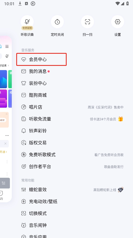 2、打开酷狗音乐,进入【我的】页面,点击右上角的扩展图标(如图所示)。