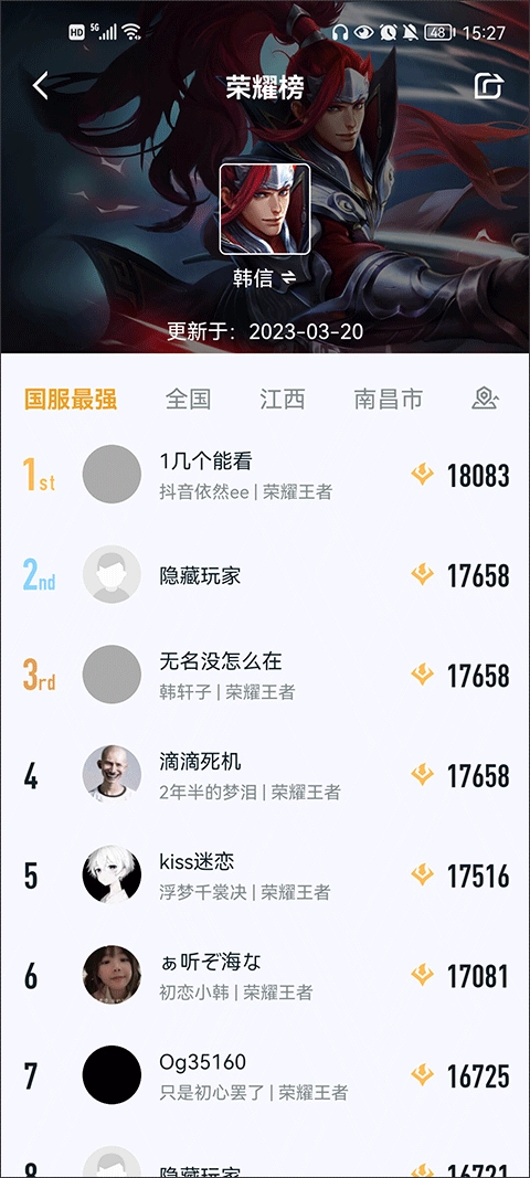 5、在众多大神眼中,荣耀榜无疑是最为看重的。无论是国服榜还是省服榜,都备受他们关注。值得一提的是,通过王者荣耀战绩查询功能,就能实现随时随地在线查询,不受地理位置的限制。