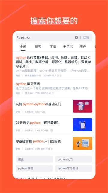 2、快捷的搜索功能,快速找到自己需要的内容,学习各个新的东西。