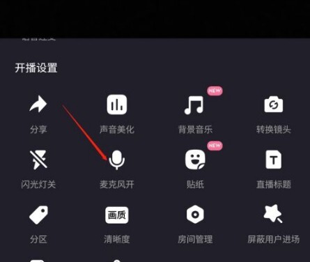 4、在开播设置中,点击麦克风选项,就能将其关闭。
