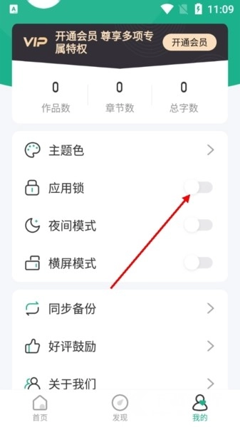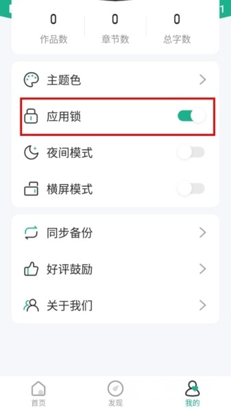 1. 进入“我的”页面,点击打开应用锁功能开关。