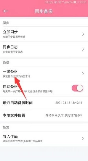 2. 打开之后,于页面中寻找到一键备份,点击该按钮便可开始进行备份操作。