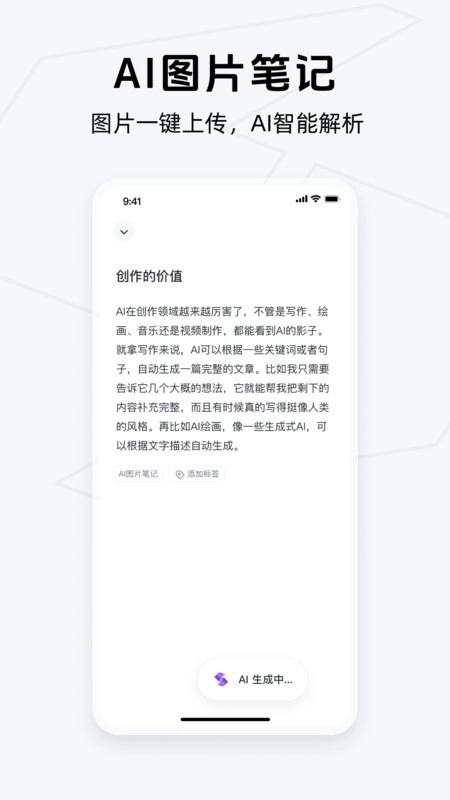 AI图片速记:一旦添加图片,AI便会即刻自动解析图片,并生成结构化笔记。
