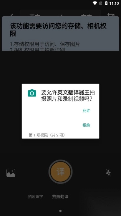 若要使用“拍照翻译”功能,需授予设备(包括手机或电脑)的拍照权限,通过拍摄照片来获取需要翻译的内容。