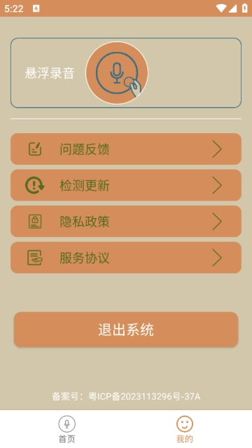 首页具备悬浮录音、音频提取以及历史录音功能查看等功能。