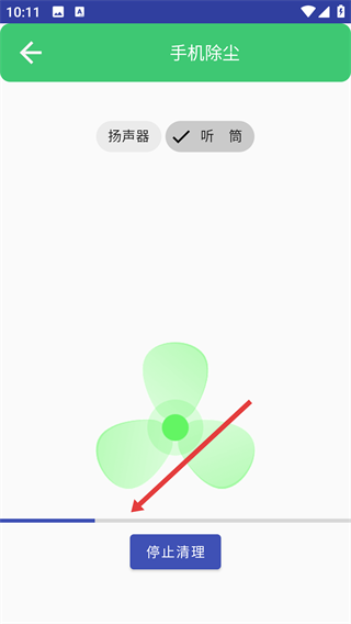 3、点击【清理灰尘】按钮,启动听筒灰尘清理进程。