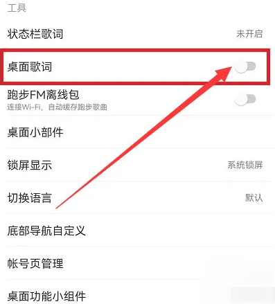 3、进入设置页面后,找到【桌面歌词】功能并将其开启,这样就完成了相关设置。