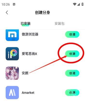 3. 挑选出想要进行分身的应用,点击“创建”按钮来完成操作。