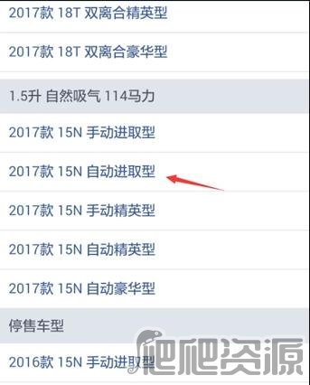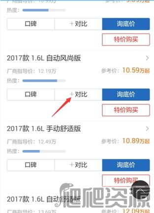 6、选好对应的品牌车型后,接着挑选该车型的不同版本来做对比。