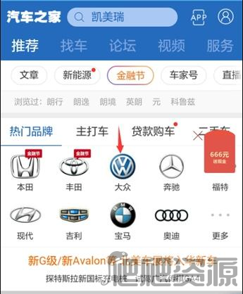 1、首先在手机端打开汽车之家应用,找到并选中你想要进行对比的车型品牌。