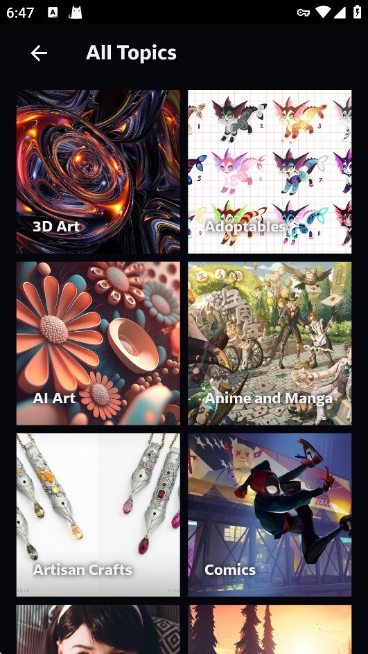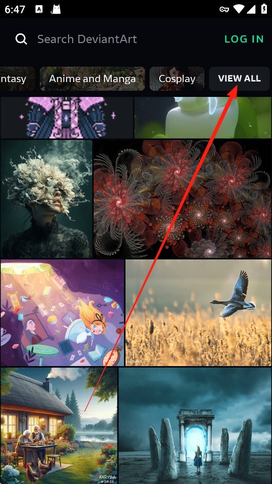 1、启动DeviantArt应用程序,这里汇聚了海量富有创意的优秀作品